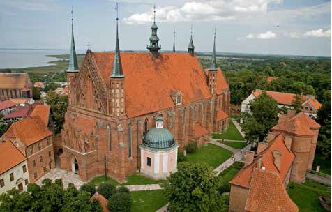 prawnym. Oba powiązano w jeden zespół dopiero na przełomie XIX i XX w. Prawa miejskie Civitas Warmiensis (Miasto Warmińskie), jak zwano wówczas Frombork, otrzymało w 1310 r. a z biegiem lat wykształciły się tu prężnie działające cechy, m.in. krawców, piekarzy i piwowarów, działające głównie jako usługodawcy kanoników i służby kościelnej. Od połowy XV w., na mocy pokoju toruńskiego z 1466 r., Warmia wraz z Fromborkiem stała się częścią Królestwa Polskiego. Od 1510 r. na wzgórzu katedralnym mieszkał Mikołaj Kopernik, który jako kanonik kapituły warmińskiej żył i pracował tu nieprzerwanie aż do śmierci w 1543 r. To tutaj opracował swoje